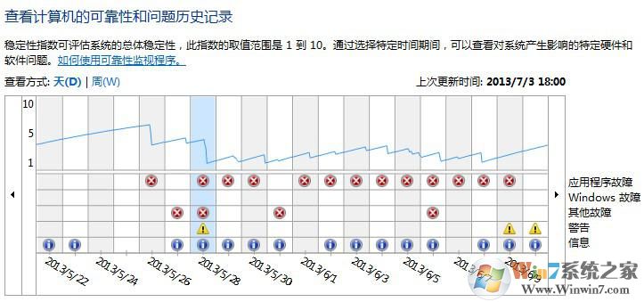 可通过Windows系统“可靠性监视器”的“查看可靠性历史记录”功能,快速找到影响系统稳定的程序,然后作相对的措施,具体步骤如下: