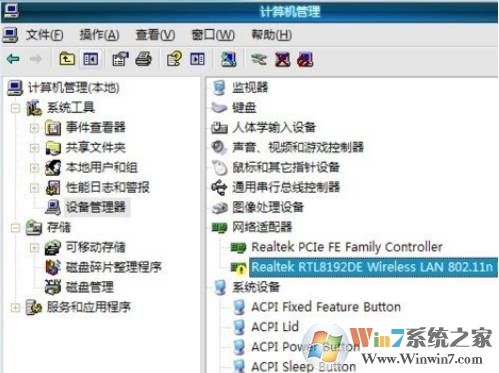 如上图 网络适配器中的rwaltek rtl8192de wireless lan 802.11nn就是网卡了(无线网卡),上面的是有线网卡。
