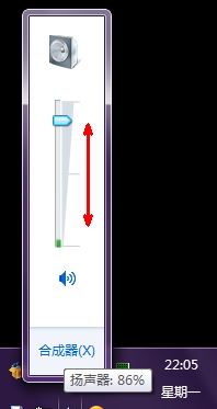 桌面右下角即系统托盘区域的音量调节,这个虽然是最简单的,但也是最容易忽略的,所以在遇到声音小的时候,请先看看音量调节是否调节了,如图所示: