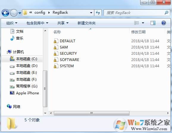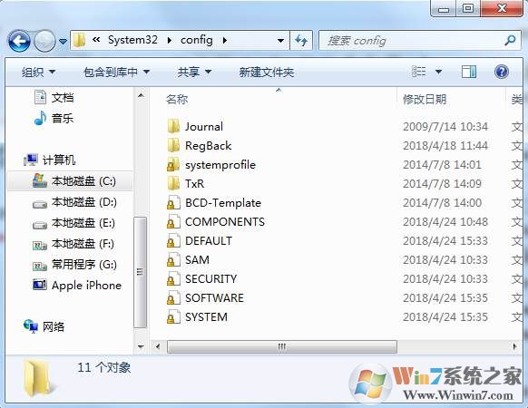 我们可以看到有 DEFAULT、SOFTWARE、SYSTEM 等几个就是注册表文件了。