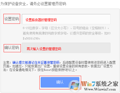 初次进入路由器管理界面,为了保障您的设备安全,需要设置管理路由器的密码,请根据界面提示进行设置。如下图: