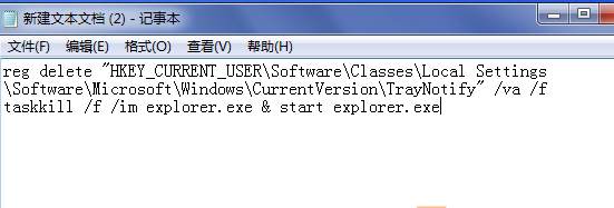 reg delete "HKEY_CURRENT_USER\Software\Classes\Local Settings\Software\Microsoft\Windows\CurrentVersion\TrayNotify" /va /f