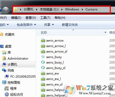 4、打开C盘,打开Windows系统文件夹,在打开Cursors,如图所示: