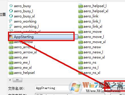 8、选择我们刚才复制好的鼠标文件,选中后再点击“打开”按钮,点击应用在点击确定即可!