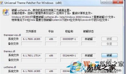 这方法其实并没有什么技巧可言的,纯粹是借助UniversalThemePatcher工具,操作方法很简单,一般用户都可以一键解决