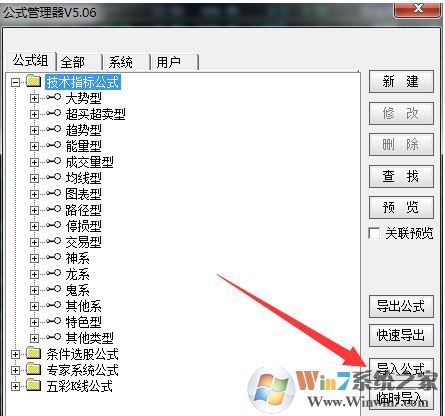 3、点击指标文件夹,这就是我们要导入的地方,点击“导入公式”,如图: