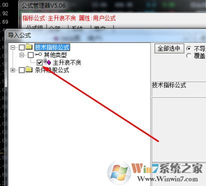 5、然后我们在左侧展开技术指标公式直到展开到最后一个子路径,千万不可以直接勾选第一个技术指标公式,否则必定出错,然后点击确定即可打开了,如图: