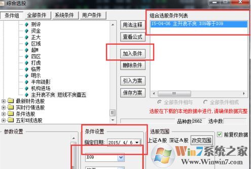 打开后呢下面我们点击功能,公式选股,点击综合选股,找到刚才的指标,点击加入选股,把下面的公式选择一下等于或者大于,点击导入即可!