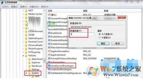 1、开始”→“运行”,在“运行”对话框中输入“regedit”,点击“确定”找到以下内容:HKEY-LOCAL- MACHINESOFTWAREMicrosoftWindowsCurrentVersionpolicies点击“system”文件夹, 然后双击右侧的“shutdownwithoutlogon”项。将数值改成1。