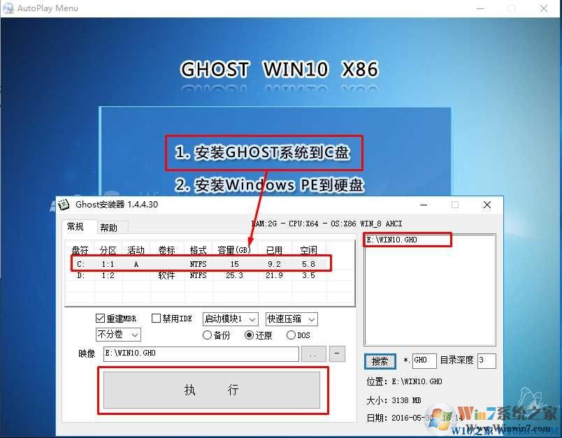 方法一:下载ISO镜像文件后解压至磁盘根目录,运行Autorun.exe ,然后点击硬盘安装Ghost Win10到C盘,并在启动一键还原工具后选择C盘 点击确定开始安装系统。(安装前注意备份资料)