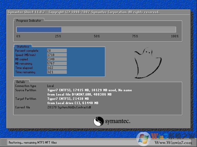 选择列表中的系统盘(默认C盘),选择“WIN7SP1.GHO”映像文件,点击执行。会提示是否重启,点击是,系统将自动安装。