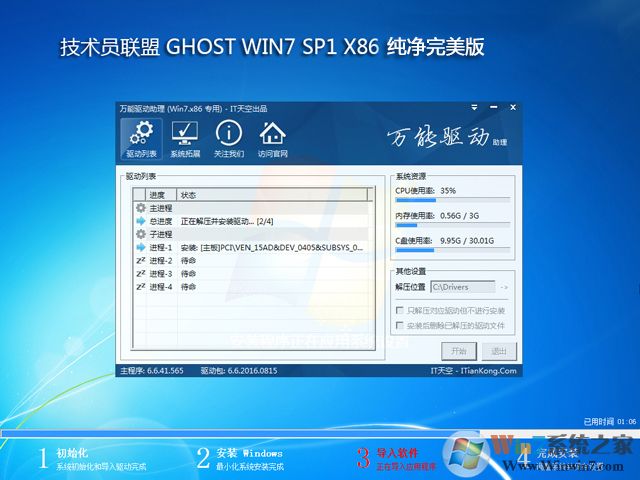 6、本Ghost 加入了驱动选择工具,但不是100%的都可以,相关没有的驱动可以网上或利用win升级补丁功能升级驱动。