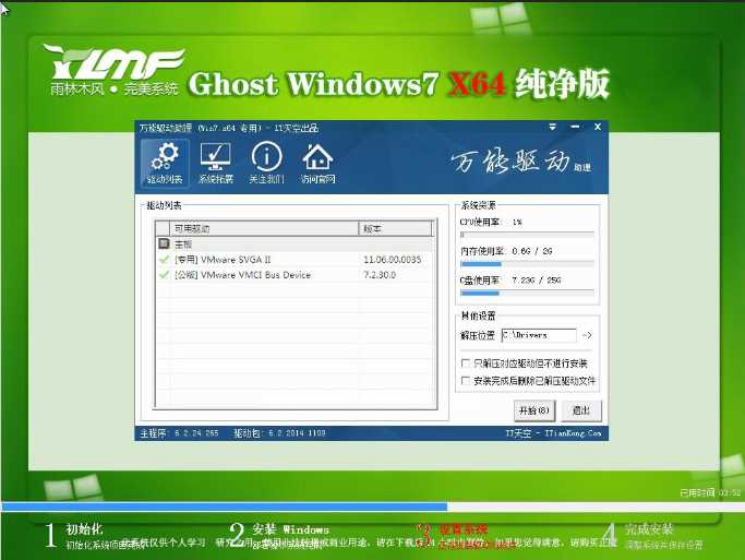 雨林木风Win7 32位纯净版安装过程图,自动安装硬件驱动程序中,整个过程2-5分钟。