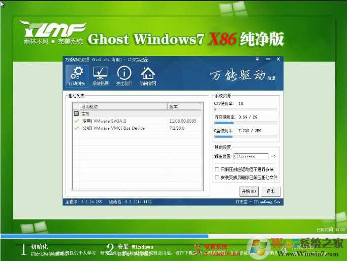 雨林木风Windows7旗舰版 32位精简纯净版ISO 部署过程中,自动安装驱动程序,整个过程几分钟,无蓝屏现象。