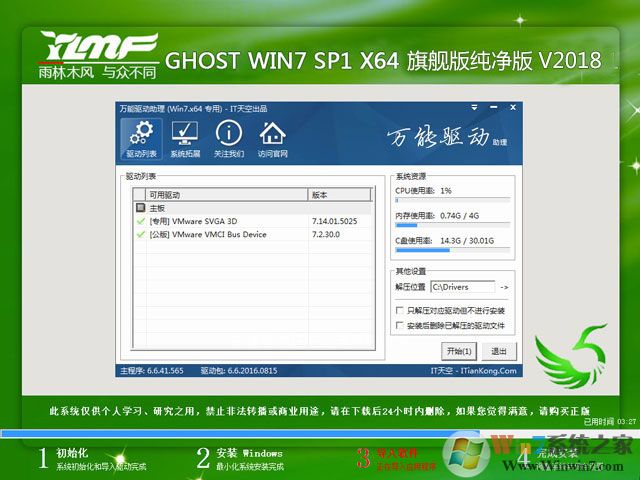 * 集成常见硬件驱动,智能识别+预解压技术,绝大多数硬件可以快速自动安装相应的驱动。