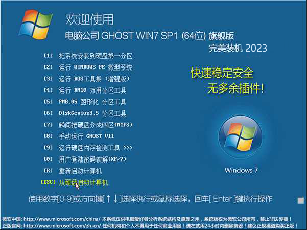 电脑公司Windows7 ghost 64位高级旗舰版V2023在部署阶段完成驱动智能检测及安装。系统纯净无毒,包含必备软件,聊天、影音、安全一键搞定。