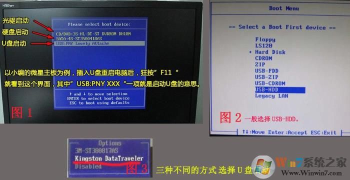 2、当电脑启动以后反复的按快捷键一般是F12,机型不一样快捷键有可能不一样,具体请看下面启动按键列表,之后窗口里面会有几个选择,我们要找到并按上下方向键"↑↓"选择到u盘,然后按回车键进入U盘启动盘主界面。(一般我们选择的时候可以看下其中一个选项是有关USB或者您u盘的品牌的英文名称,那便是我们的u盘了!) 小编整理了各种品牌主板一键进入U盘启动盘的快捷键,我们可以在下面的列表中查找自己相应的主板品牌,然后就可以看到该主板的一键启动u盘装机大师的热键了。