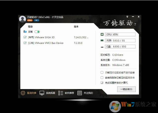 5、使用万能驱动助理V6.6版本大容量驱动包(智能安装驱动);