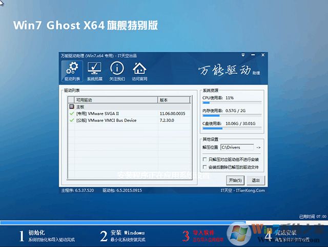 系统之家Windows7旗舰版64位完美装机版在部署过程中自动安装硬件驱动。