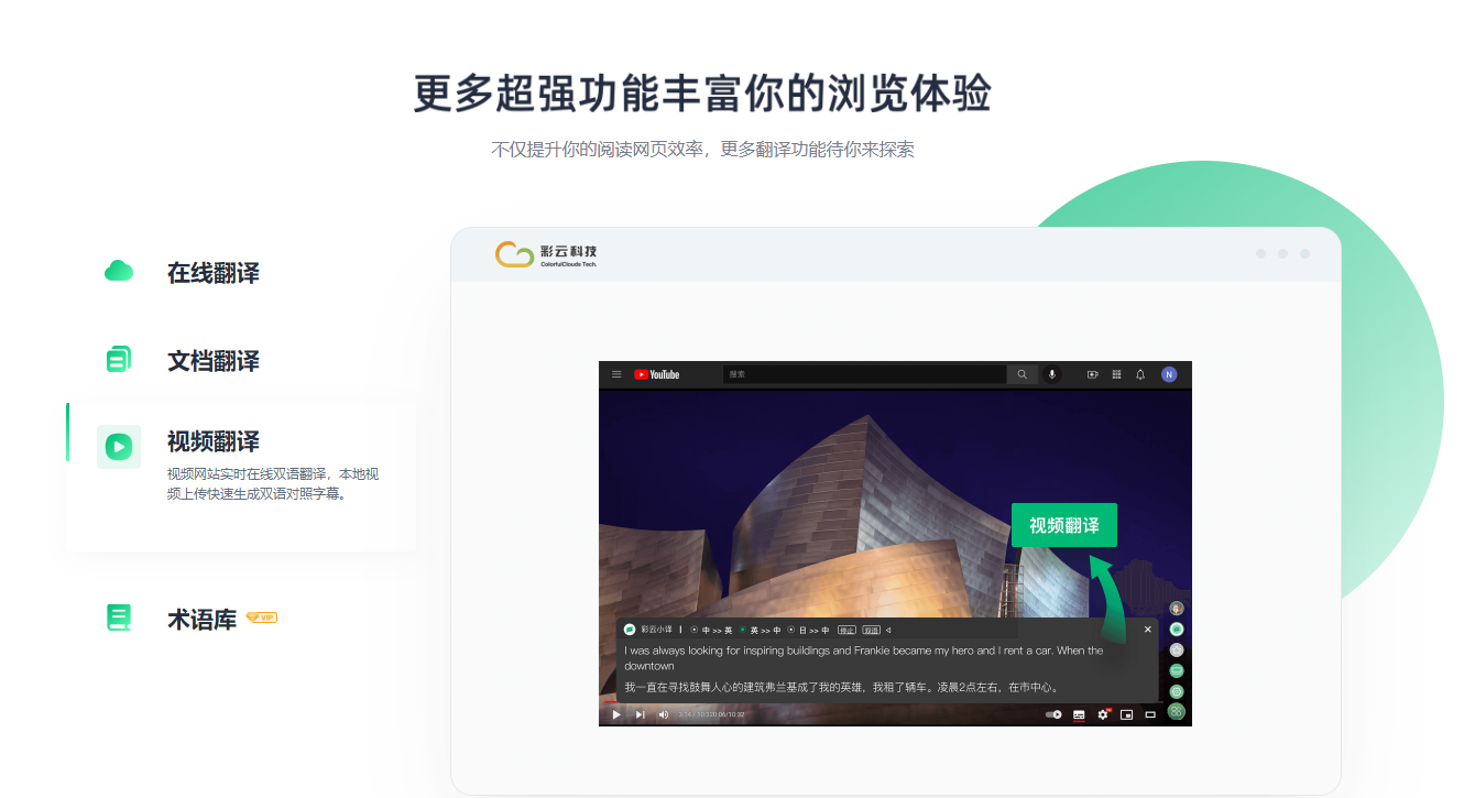 彩云小译软件是一款由北京彩彻区明科技有限公司自主研发的人工智能翻译产品, 支持网页版,Chrome浏览器插件,手机app,支持多种语言混合翻译,中文和英文同显,可翻译多国语言。不仅可以对网页以及PDF文档进行翻译,还有划词翻译、视频翻译,翻译质量高,关键还能懂语境,还能识别方言,这样的神仙翻译工具真的是太难得了!