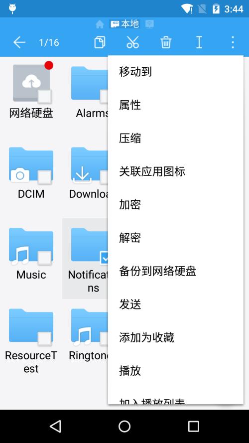 2、点击“文件夹”并进入,可以浏览文件夹中的内容,用手指长按文件,可弹出对话框,可以选择相应的项目进行操作。