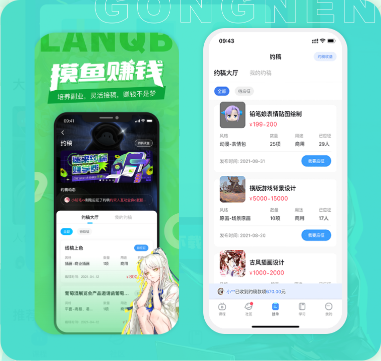 蓝铅笔提供招聘信息、接单服务及版权登记,构建学习到应用的成熟艺术商业模式。