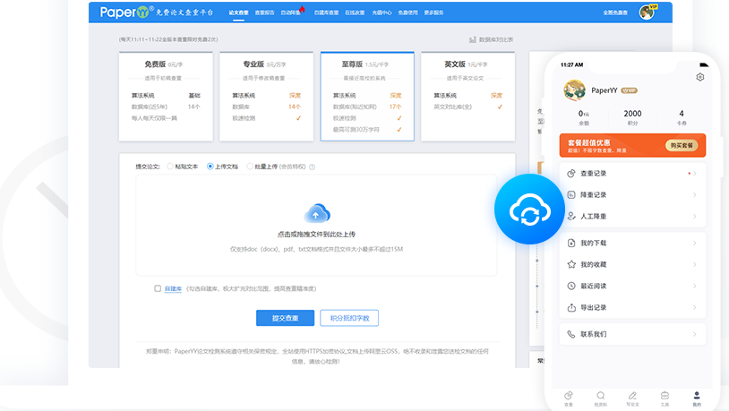 PaperYY论文查重是目前市面为数不多以互联网思维运营的查重平台,一直坚持以用户为中心,提供优质的查重服务。同时效率、安全、质量、体验是我们一直追求并遵循的核心标准。PaperYY也是拥有三端(电脑端,移动端,微信小程序端)的查重平台,每年服务用户数遥遥领先同行,以口碑著称。