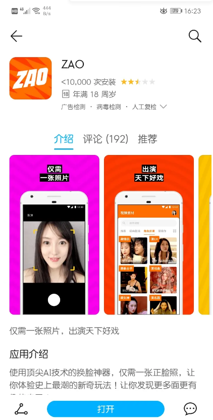 你使用ZAO APP无需PS,只需一张自拍照片,即可将本人脸部无痕换到明星头上,生成同款视频或者表情包,因为技术非常棒,效果很逼真,所以瞬间引爆了朋友圈。