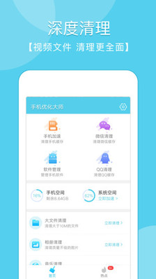 手机优化大师是一款手机垃圾清理工具,一键清理将简单做到极致,为您360度系统优化,内存清理,垃圾清理,关闭多余进程、提升运行速度,让您的手机运行更流畅、更省电,成为您贴心的手机管家。
