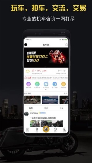 让用户可以了解更多摩托车的历史,同时您还可以在这里认识更多的摩托车爱好者们,与更多的骑士约起线下进行骑行;拥有许多的车友论坛,让你可以获得更多的摩托车价格信息,买卖摩托车不用发愁;随时随地进行定位,都可以发现附近车友发送的骑行动态,了解更多的骑行信息;还有许多的机车新闻等你来阅读。