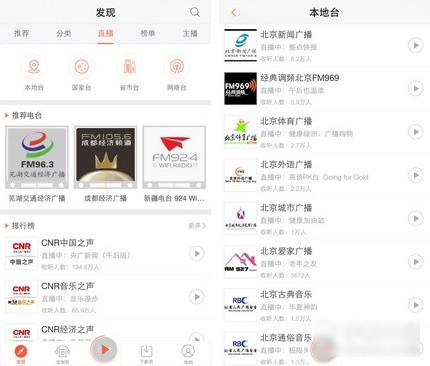 《喜马拉雅FM》将电台资源做了详细的分类,本地台、国家台、省市台以及网络台,根据需要选择即可。播放界面会显示当前播出的节目以及主播,同时还为大家准备了节目 单,可随时查看,比使用传统的收音机还要方便。