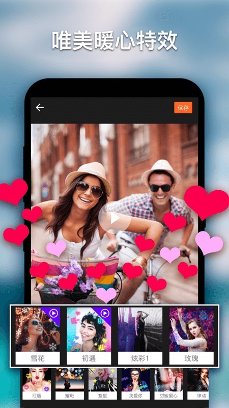 6.【视频特效】:超酷炫FX特效和音效轻松添加,爱心气球、花瓣,等好莱坞大片中的场景特效,拍出大片感觉;