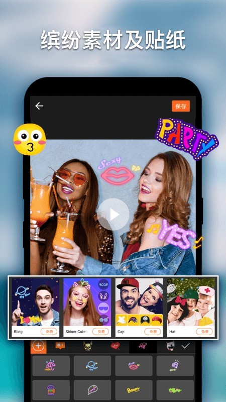 8.【视频贴图】:海量表情包贴图、涂鸦贴纸、签名贴图、相册贴纸、照片贴图、GIF贴纸,保留最近贴图记录;