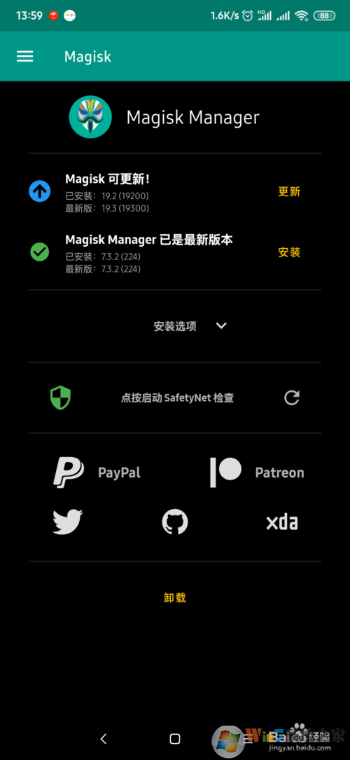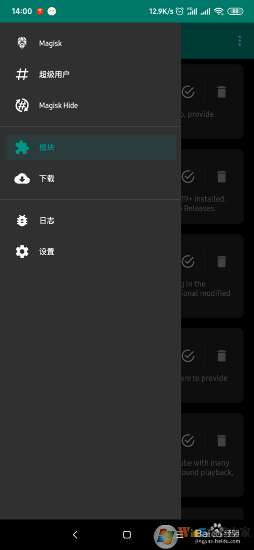 首先必须要安装Magisk这个root授权管理软件