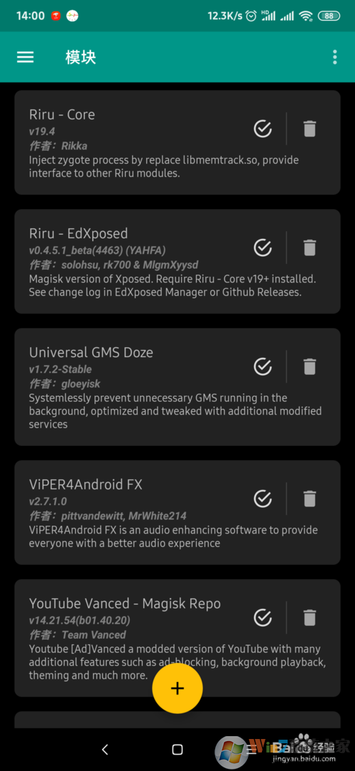 分别下载这两个模块勾选并启用它们:Riru-core和Riru-EdXposed