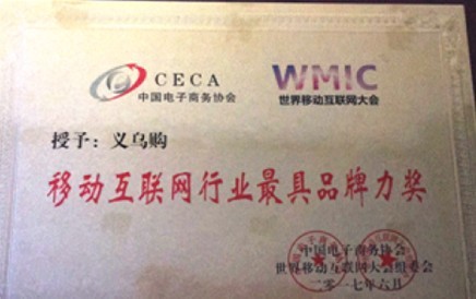 2017世界移动互联网大会暨新媒体门户大会上,义乌小商品市场官方网站义乌购荣获“移动互联网行业最具品牌力奖”。