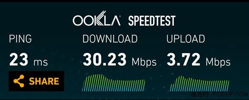 除了通讯信号,网络信号也是很重要的一点,我们来看一下它的网速相比中国移动电话卡如何,通过软件SPEEDTEST进行测试,测试环境依旧为我日常的办公环境内。