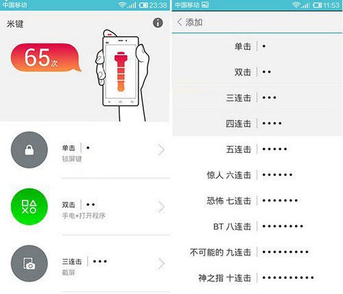 3、挑战全球狂点榜,受万人敬仰 迄今为止最好玩的智能按键,米键可以记录你点按成绩及排名,晒微博、 炫朋友圈让他们膜拜吧! 配合一键多功能,你可以自由创造连击十次的不同应用设置。