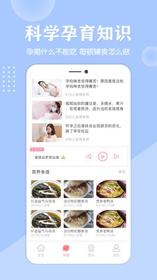 【育儿百科】孕期什么不能吃,在这里都可以查到;宝宝爱听的儿歌故事,在这里应有尽有;每顿辅食怎么做?在这里分分钟学会。