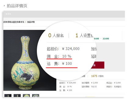 答:目前阿里拍卖平台上,拍卖行和资产处置机构发布的拍品,可能会涉及到买家佣金和运费,具体佣金比例和运费金额,以拍品详情页里的描述为准。