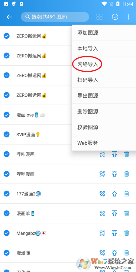 第3步:点击右上角菜单,选择网络导入(如下图)