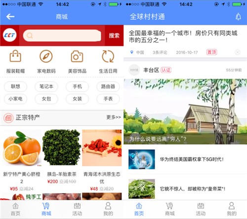 包含购物、民生资讯、社区论坛等功能,为村民生活带来帮助。