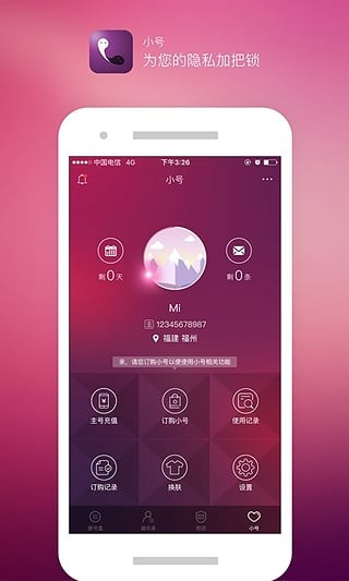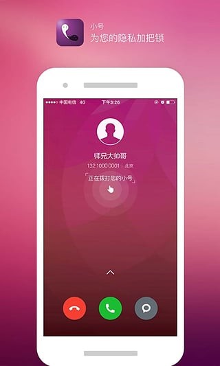 2.手机用户在现有手机号码的基础上不需要换机、无需增卡即可再绑定一个小号,适用于撩妹、租房、搬家、网购、打车等多种场景。