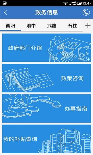 第一,为广大人民群众提供了有关政策、办事指南、惠民资金等一系列服务查询功能,而且软件操作还非常的简单便捷;