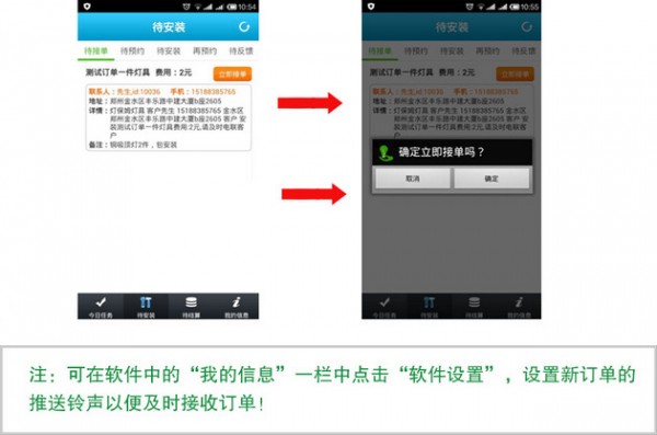 即在订单下单后24小时内必须和客户联系约定具体安装时间,并在系统中详细输入。