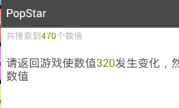 一共搜到了470个地址,这时候因为地址过多无法修改,返回到游戏在打碎几颗星星使分数发生变化。