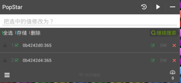 在次搜索发现还是2个地址。是怎么回事呢?因为在你打碎星星时候分数是慢慢往上增加的,比如说:现在200分 打碎星星变成了400分,这时候分数会从201 202 203 这样变到400,这是2个地址中一个,另外一个则直接变为了400。