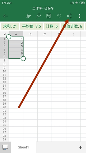 首先我们打开我们要导出的Excel文档,然后我们点击右上角的分享的图标选项,如下图所示。