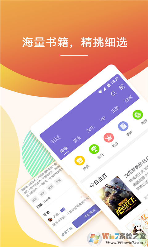 【海量书库】书城图书繁多,种类齐全,包括玄幻、武侠、言情、都市、穿越、宫斗、历史、军事、热门、网络、经典小说
