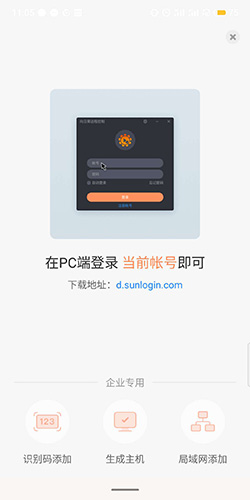 3、添加电脑主机,直接在PC端登录当前账号,可以选择识别码添加、生成主机或者局域网添加。